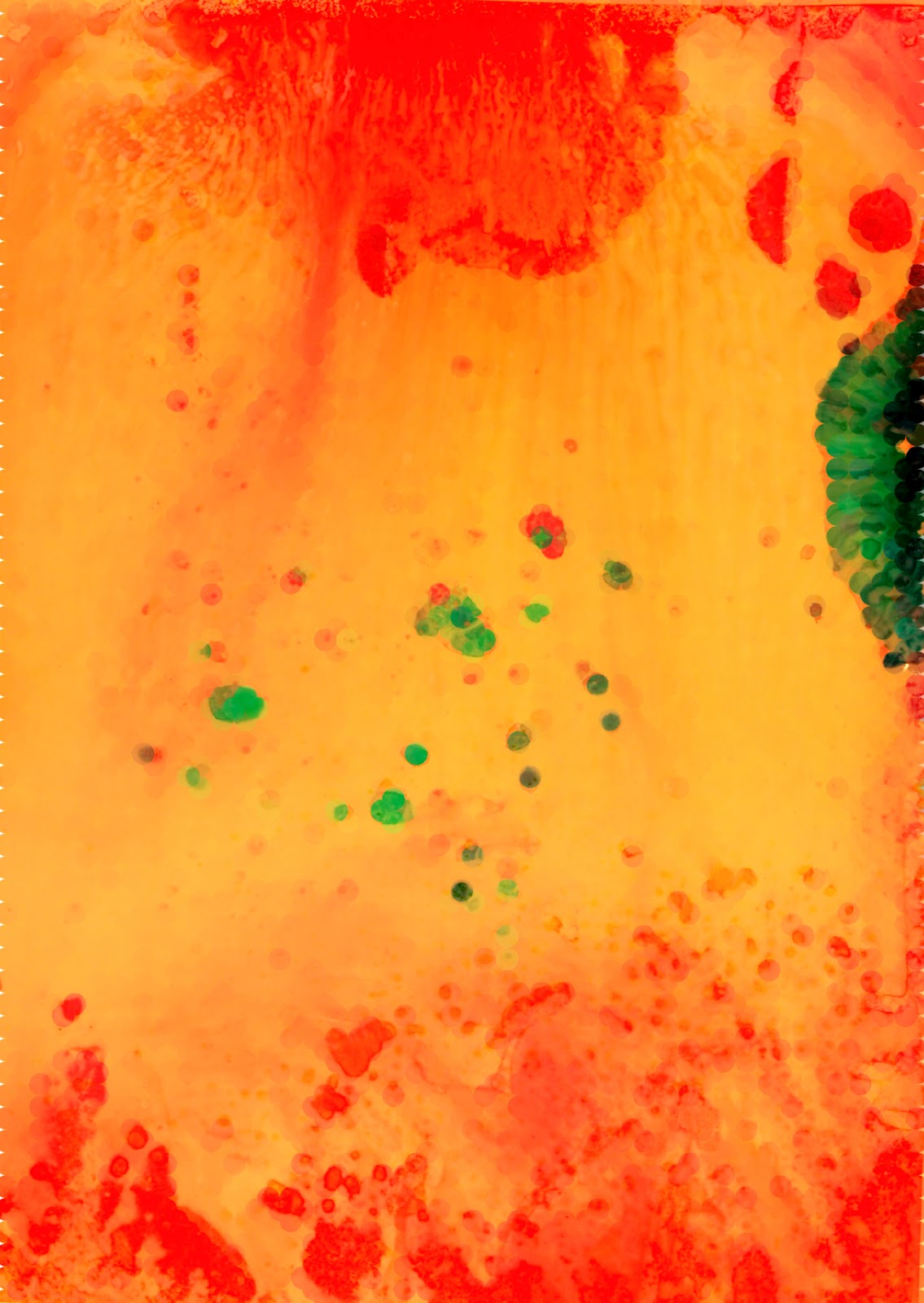 This is sprayed on Yupo paper with lots of color and then I also sprayed distilled water from its own spray bottle to keep the paint moving on the paper. So I sprayed distilled water first onto the paper, next sprayed the green and yellow paint, turned the paper around and let the paint run in different directions, then kept spraying the paper with distilled water to keep the paint nice and runny. Hope that makes sense. Don't panic, just experiment.